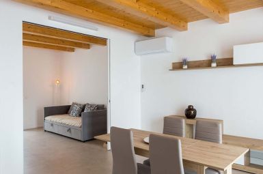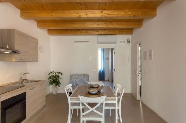 Elegante appartamento, con accesso da ingresso condominiale, posto al primo piano. L’ingresso conduce ad un’ampia zona giorno, che unisce soggiorno e cucina con accesso diretto al terrazzo. Completa il piano una camera matrimoniale con balcone e un bagno. La comoda scala interna porta al piano superiore, dove si trovano due spaziose camere matrimoniali, di cui una con due letti singoli unibili a seconda delle esigenze. Entrambe le camere sono dotate di finestre Velux automatizzate con tendine oscuranti, che garantiscono luminosità naturale regolabile. A questo piano si trova anche un bagno e l’accesso ad un’ampia terrazza prendisole, ideale per momenti di convivialità e relax sotto il sole. Lenzuola e asciugamani sono forniti.
