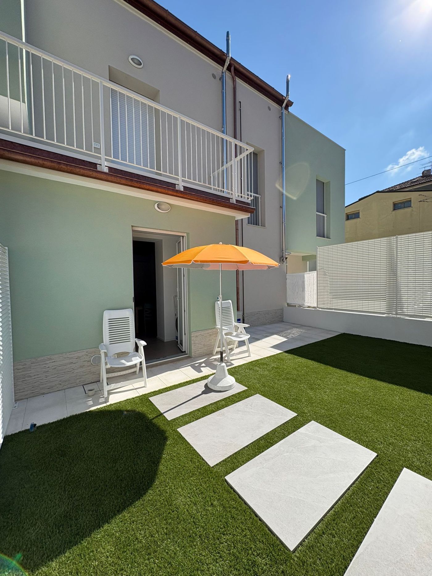 Ampia vetrata che conduce al giardino privato ideale per i momenti di relax. Il piano terra dispone di un bagno con doccia e bidet. Una scala interna collega al piano superiore, dove si trovano una camera matrimoniale, una camera con possibilità di doppio letto estraibile e un secondo bagno, anch’esso dotato di doccia e bidet. Lenzuola ed asciugamani in dotazione.