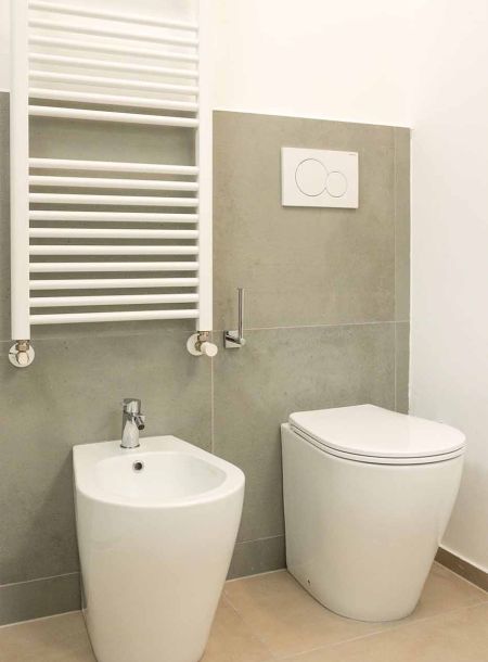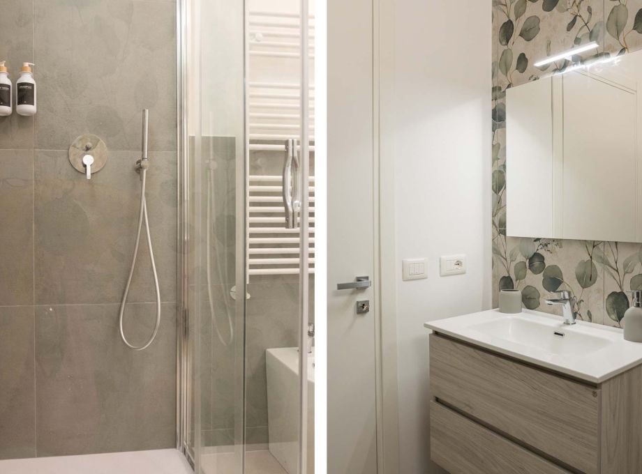 Il bagno di Dimora Caprera è pensato per garantire comfort e praticità, con ambienti luminosi e curati nei dettagli. A disposizione degli ospiti un set completo di morbida biancheria da bagno e una selezione di amenities, per vivere momenti di relax e benessere durante il soggiorno.