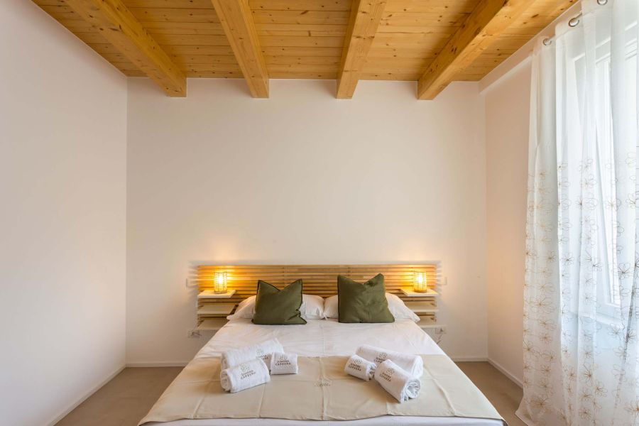 Camera doppia principale con finestra a doppia anta e apertura a vasistas.