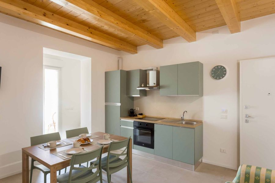 Una cucina accogliente e completamente accessoriata, provvista di ogni comfort e utensile indispensabile, pensata per offrire agli ospiti la libertà e il piacere di sentirsi come a casa.