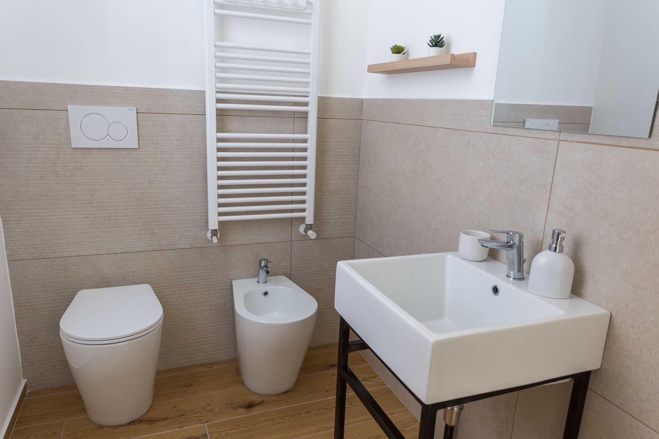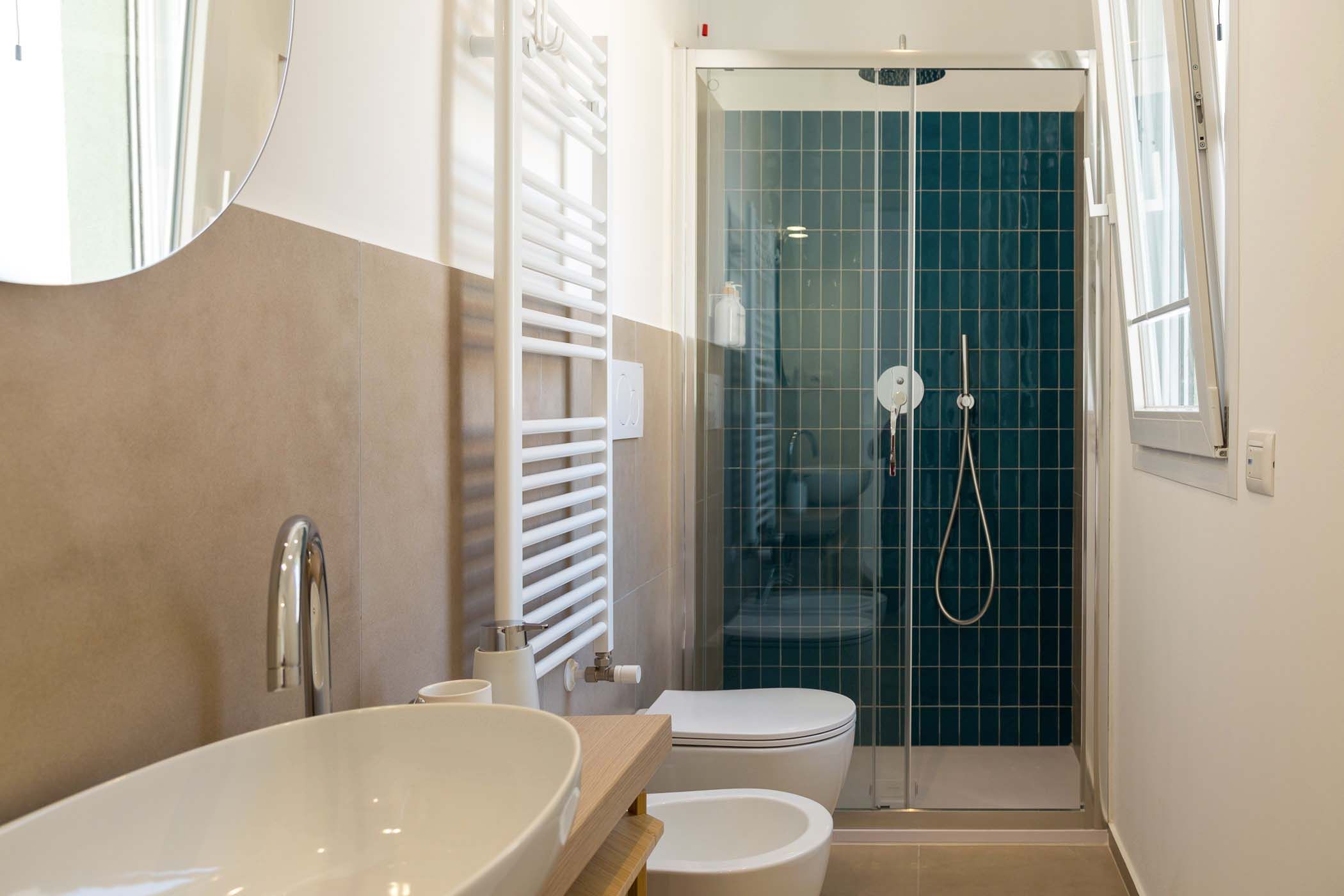 L’appartamento dispone di un bagno con doccia e bidet.