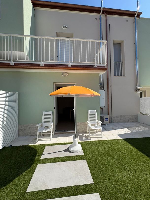 Ampia vetrata che conduce al giardino privato ideale per i momenti di relax. Il piano terra dispone di un bagno con doccia e bidet. Una scala interna collega al piano superiore, dove si trovano una camera matrimoniale, una camera con possibilità di doppio letto estraibile e un secondo bagno, anch’esso dotato di doccia e bidet. Lenzuola ed asciugamani in dotazione.